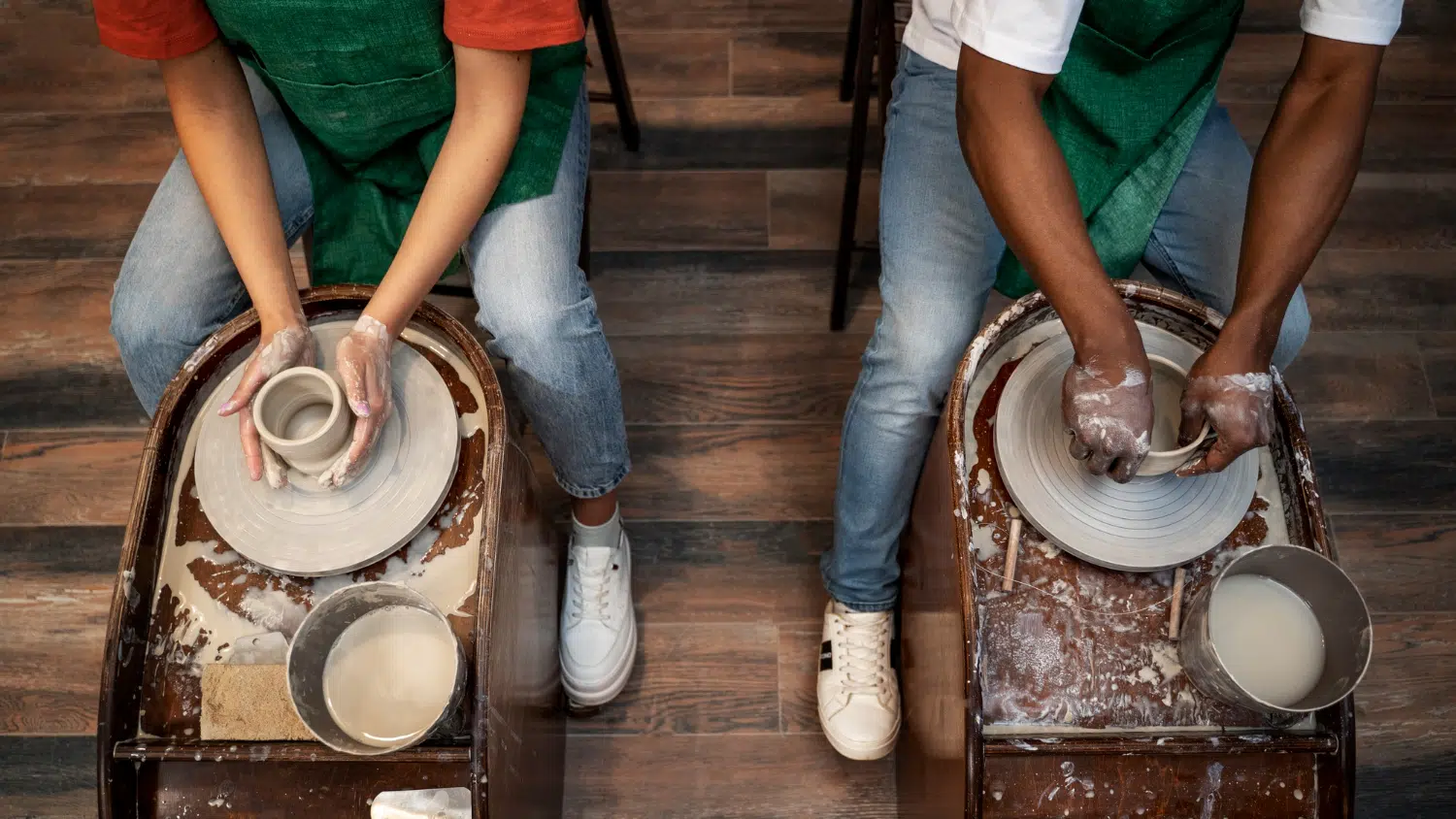 Cette formule s’adresse à toutes celles et ceux qui recherchent un atelier poterie adulte flexible. Vous façonnez vos pièces à votre rythme et disposez de tout le nécessaire sur place : terre, outils, engobes, émaux maison, tabliers, espace de stockage et cuissons régulières.